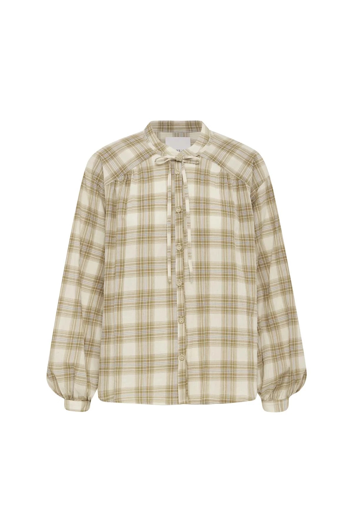 A relaxed plaid cotton blouse with a soft button-through front and delicate neck tie. Designed with gentle volume through the sleeves and an easy drape, it feels light and breathable against the skin. A versatile piece that pairs seamlessly with denim, silk skirts or layered knitwear.