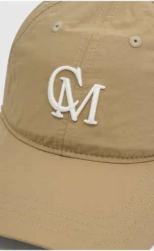CAMILLA AND MARC James white baseball cap with centre front embroidered monogram, adjustable tab with metal slider hardware.