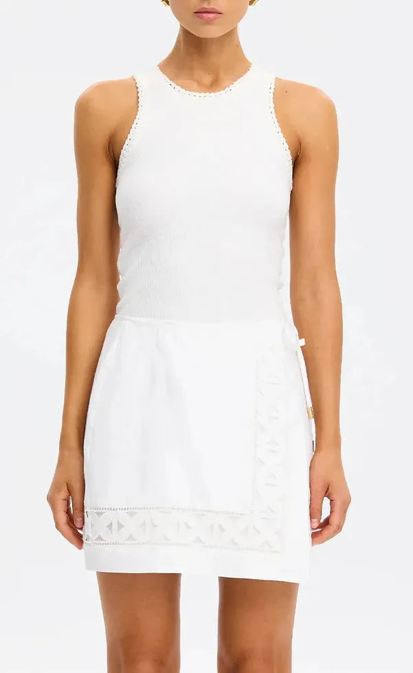 The Marley Skirt is crafted in linen featuring an asymmetric wrap design with adjustable waist tie, complete with embroidery detailing across the hem. Style with the matching Marley Shirt for a coordinated look, or pair with a simple tank and sandals for effortless daytime dressing.