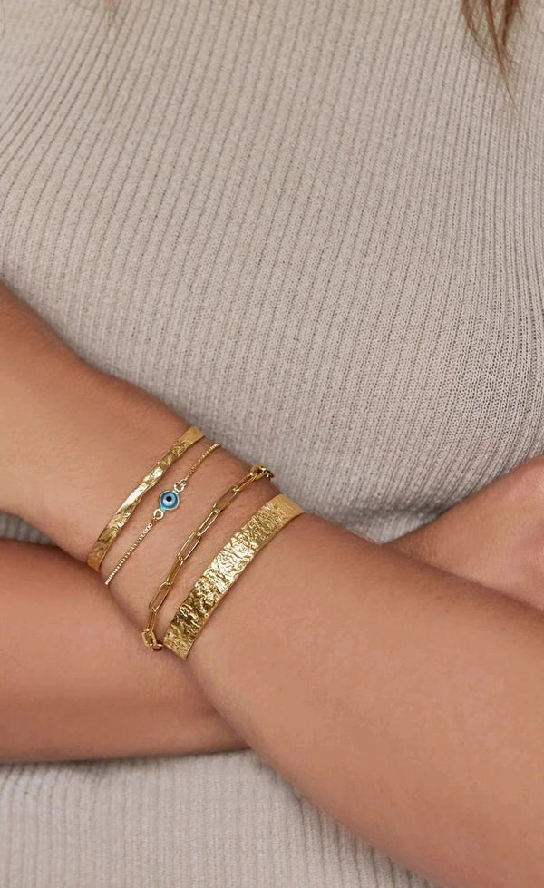 In the world of cuffs, you don't get much better than the Olivia Bracelet. The beautifully textured, crushed gold bracelet creates a style you will want to show off again and again!