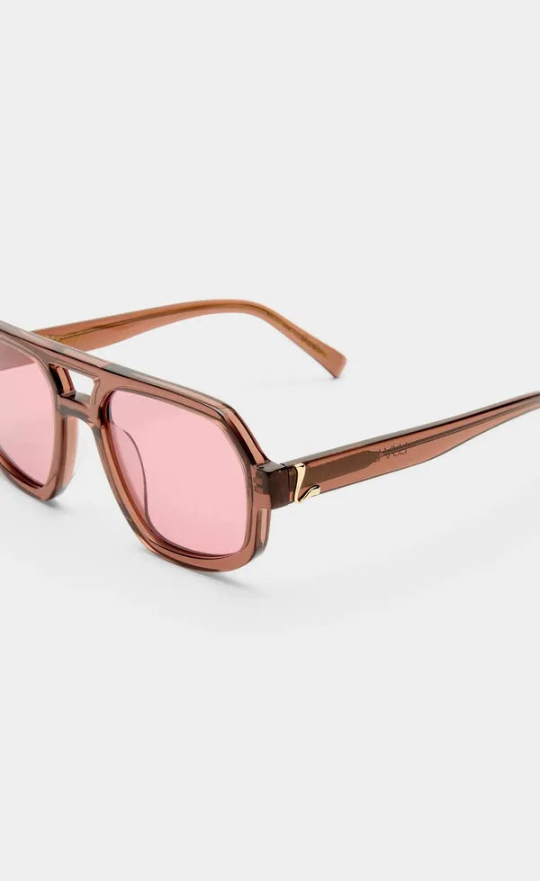 • Finished in a premium crystal burgundy frame with blush lenses.