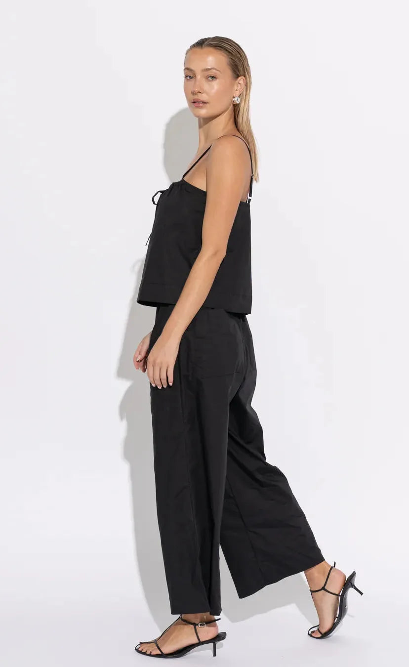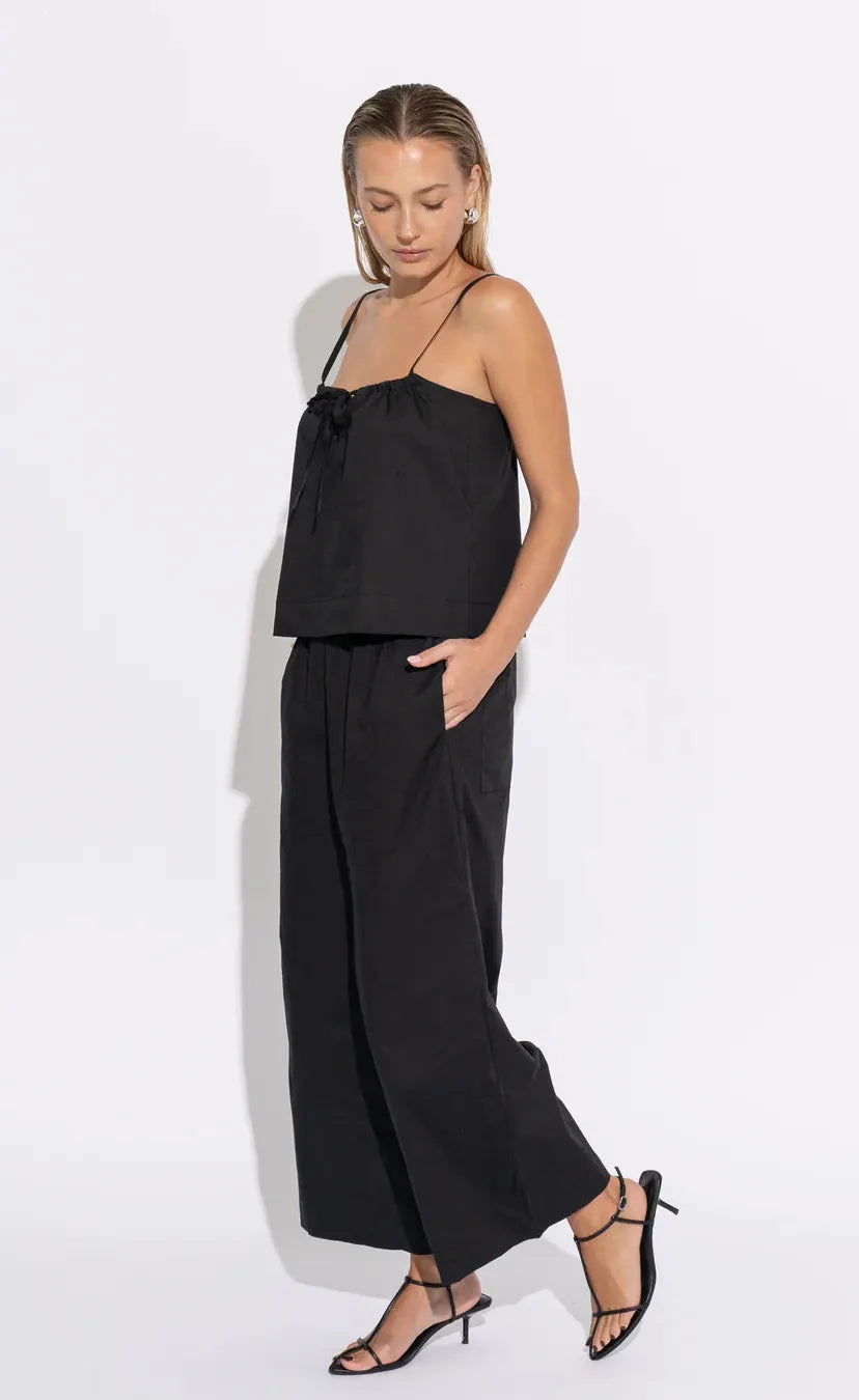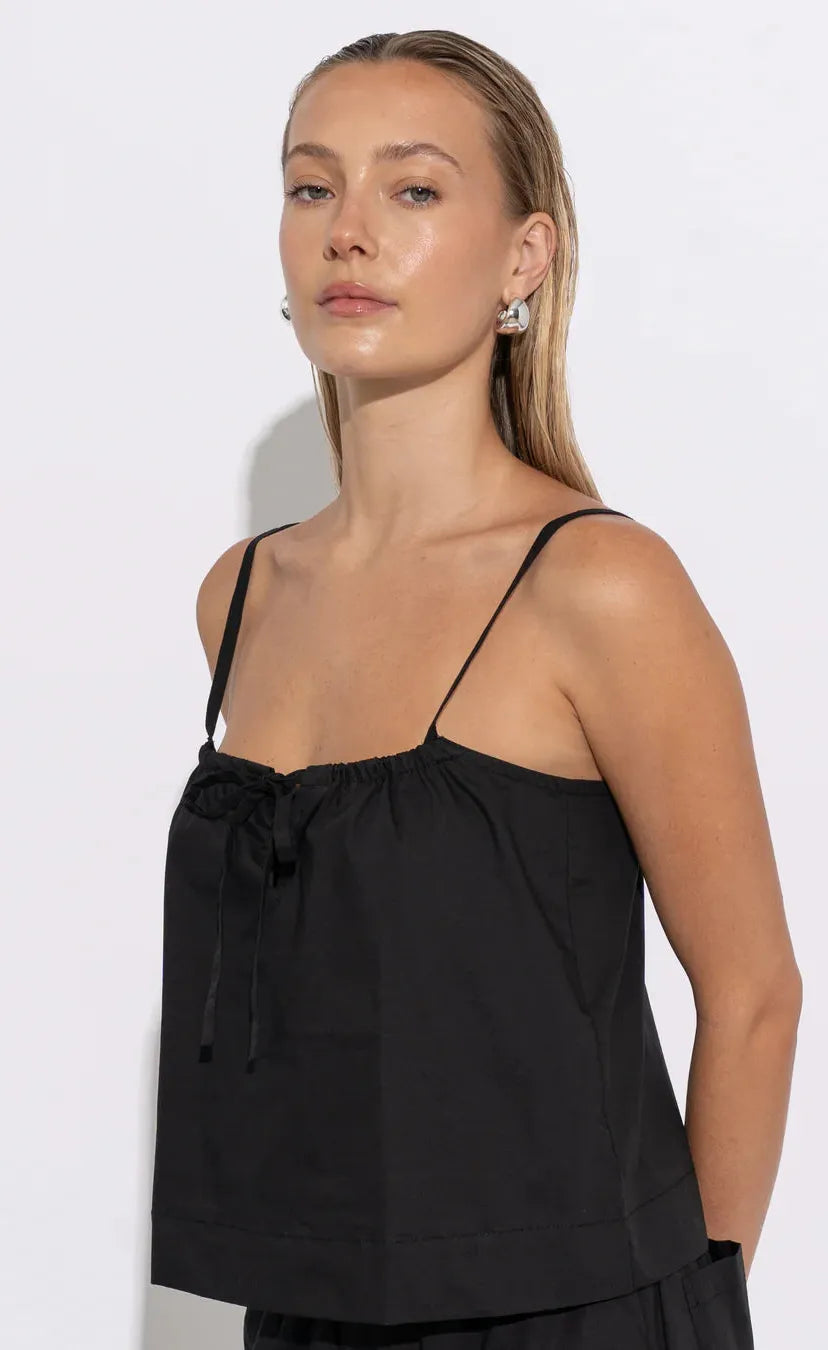 A Signature staple for your wardrobe. The Pheme Cami features a square neckline, adjustable drawstring, front tie detail and a wide bottom hem. Crated in luxurious Cotton Poplin and paired with the Pheme Pant for a crisp and polished look.