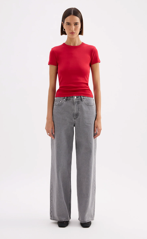 The Organic Baby Tee is made from a lightweight organic cotton jersey, which has a soft, breathable hand feel. The silhouette is a flattering close fit and finishes at the hips. Features include a crew neck, and short, fitted sleeves. This can be tucked in or worn over midrise bottoms.