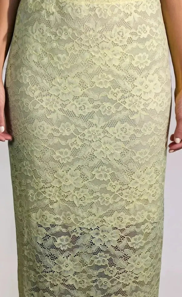 A layered statement in light and shadow. The Anouk Three Piece Set pairs delicate texture with fluid movement, combining a soft lace bralette & midi skirt, along with a sheer overlay. Designed to be worn together or styled as separates, it invites both statement and subtlety depending on the occasion and welcomes it's effortless approach to warm-weather occasion-wear. (Pieces not available separately)