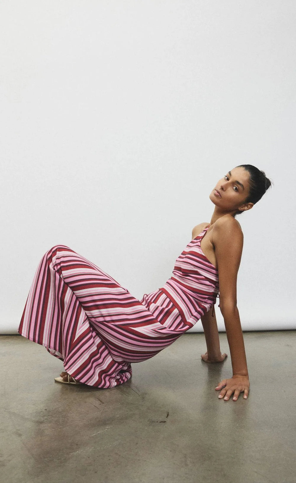 Halter Maxi Dress Magenta Stripe