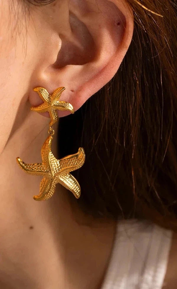 Featuring two different-sized starfish, these distinctive earrings make a bold statement in any jewellery collection. The intricate texture and design make them truly unique pieces that add a special touch to your look.